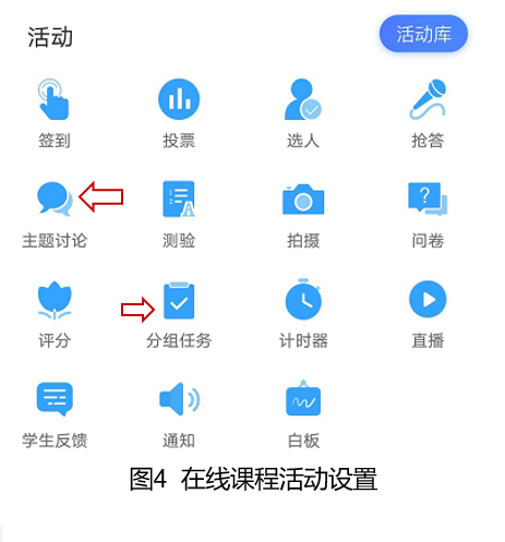 通过学习通手机端进行课程活动的设置,如图4所示,构建了教学活动的“交互性”和员工的高度“可参与性”。员工通过学习通随机分组任务及进行主题讨论,锻炼了协作、交流能力。对于“慕课”视频,大家更多关注的是“微小化”和“碎片化”,但从实践情况看,“慕课”视频的“交互性”和员工的“可参与性”更为重要。即通过设计和开发“交互式”或“互动式”的“慕课”视频,把传统的教学过程变成了一种高密度的、“一对一”的互动“聊天”过程。在“群聊空间”,教师可以像在课堂上一样,在视频讲授过程中提出各种问题,每个员工各自回答或协同作答。这样的技术运用既可督促员工在观看视频的过程中高度集中精力,又可让员工全程参与到教学过程中,动脑又动手,获得较佳的学习效果。这种“一对一”互动过程,在传统的教学模式下是不可能实现的。通过设计和开发“交互式”或“互动式”的“慕课”视频,把传统的教学过程变成了一种高密度的、“一对一”的互动过程。通过互动聊天,我们发现,大量的PPT不见了,教师口干舌燥讲课的现象消失了,员工学习的欲望更加饱满了。