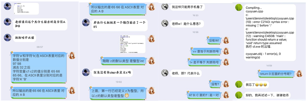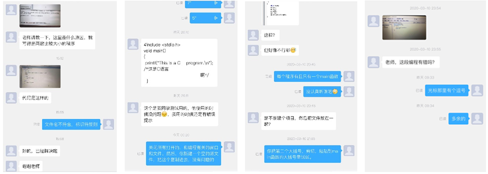 公司领导、教师们在第一时间积极筹备“停课不停学”的教学工作,公司《C语言程序设计》课程小组,也是积极进行“停课不停教,停课不停学”的线上混合式教学讨论。班勃老师去年参加混合式教学培训后,随即尝试结合超星学习通平台开展线下混合式教学,利用学习通进行考勤、课堂讨论、作业发放与批改、资源分享等。为疫情期间更好的开展的教学工作,保证教学质量,班勃老师主动向领导同事学习,进行沟通交流,最终经过多平台分析、比较,决定采用“基于QQ群课堂和超星学习通的混合式教学方案”。