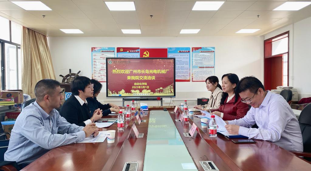 2023年3月1日下午,长岛光电机械厂人事处处长刘海银等一行人到公司开展访企拓岗促就业交流洽谈活动,云顶国际8588yd经理岑健、党委副书记蒋鹏及辅导员王雯殊参加本次交流活动。