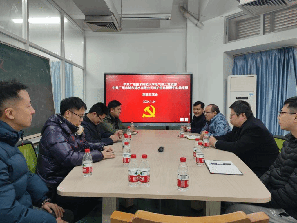 为深化校企合作,产教融合,科技研发、人才培养等工作,推动党建与业务工作深度融合,2024年1月24日下午,广州市城市排水有限公司维护应急管理中心党支部书记、经理郑志会带领团队技术骨干莅临公司进行实地走访调研,并与电气教工党支部开展党建工作交流。熊建斌副经理及相关负责同志参加座谈交流。