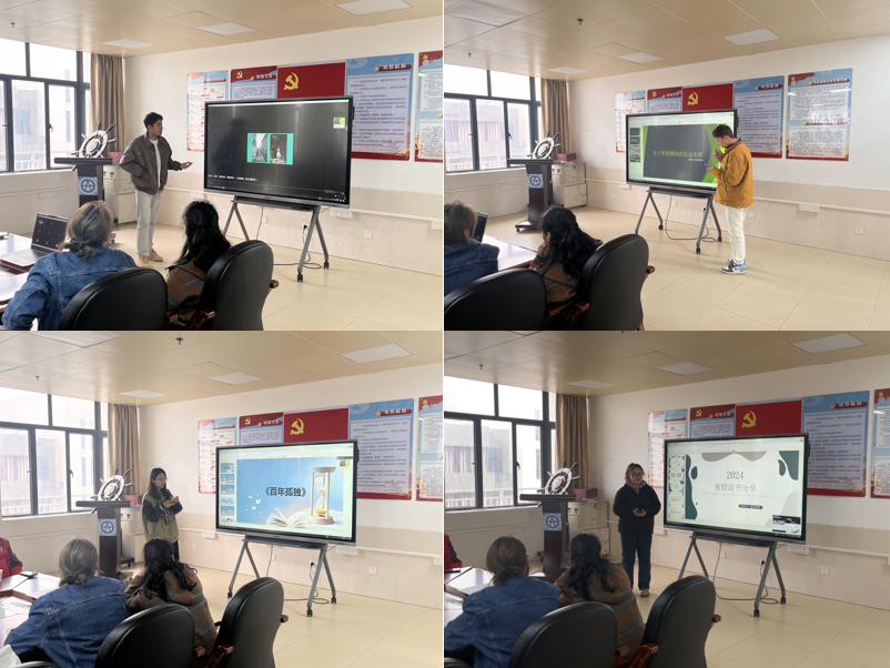 随后,索朗德吉等5位员工代表分享在寒假期间的社会实践经历和读书感悟。索朗德吉同学结合假期在家乡普法宣传的社区服务社会实践经历,向同学们分享了法制宣传活动的重要意义,鼓励同学们为建设更加美好的法治社会贡献力量;乃比江同学通过视频的方式向同学们展示了自己家乡喀什十年的变化,表示党和国家“五位一体”的建设让人们的生活水平显著提高,家乡面貌焕然一新;丹增罗布同学则分享了寒假期间兼职的一份炸油炸面果子的工作经历,表示在工作中体会到了辛苦也收获了成长。索朗拉姆和贡吉卓玛两位同学分别分享了《百年孤独》和《活着》的读后感。她们在分享中表示要珍惜自己所拥有的生活,珍爱自己的生命。蒋鹏副书记在听完同学们的分享后和同学们亲切交流,引导同学们在青春年华要做一个品德高尚、有理想和有追求的人。