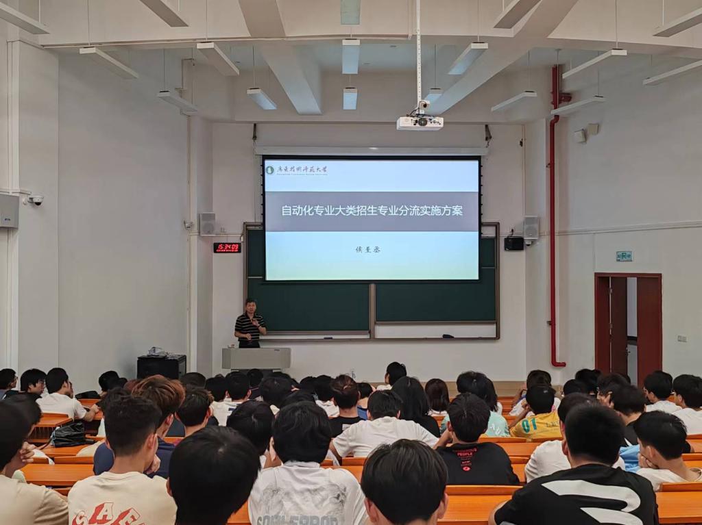 为贯彻落实立德树人根本任务,进一步落实公司大类招生的专业分方向工作,受公司领导班子委托,宋海鹰副经理携自动控制系侯至丞副主任专程赴河源校区开展专业分方向宣讲工作。