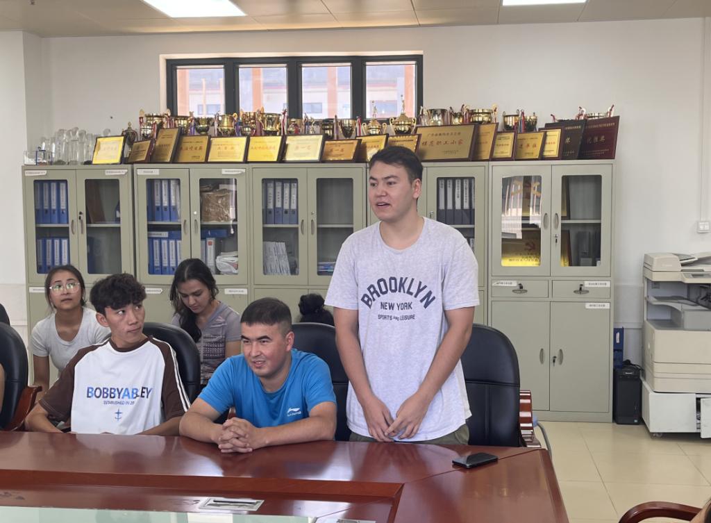 随后,邀请两位少数民族员工代表分享经验。21级阿卜杜热依木·托合提,他学习成绩良好,未有挂科情况。他从日常学习、拓展学习以及考前制定复习计划等方面为同学们分享学习经验和方法。并强调树立正确三观、培养积极心态、自我提升和积极参与社会实践的重要性。