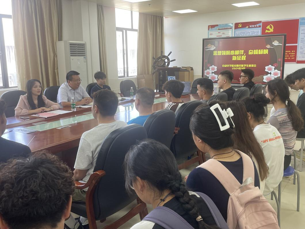 为贯彻落实党的二十届三中全会精神,深刻领会习近平总书记关于民族团结进步的重要论述,落实落细公司的“四个一”的工作部署,加强公司少数民族员工的思想建设。公司于9月30日在白云校区第一实训楼508会议室召开“思想领航心相伴,奋楫杨帆新征程”少数民族员工分享交流会。公司党委副书记蒋鹏、辅导员马一然、毛泽文以及少数民族员工代表参与此次座谈会。