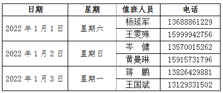元旦假期值班表