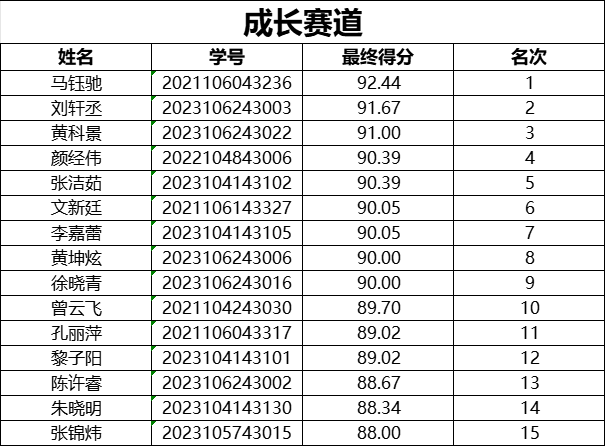 经过公司第一轮专家评审,从成长赛道中推选15名同学和就业赛道中推选出10名同学进入院复赛,进入院复赛名单如下: