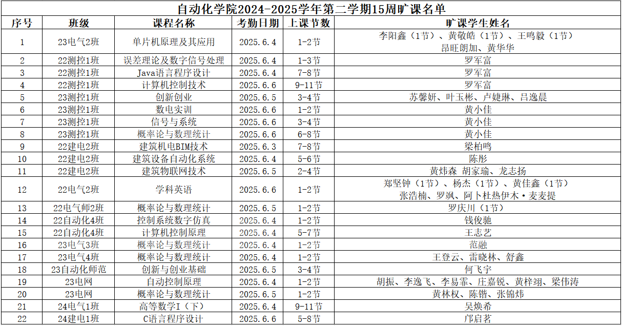 现将云顶国际8588yd(中国)有限公司2024-2025学年第二学期15周课堂缺勤情况公示如下: