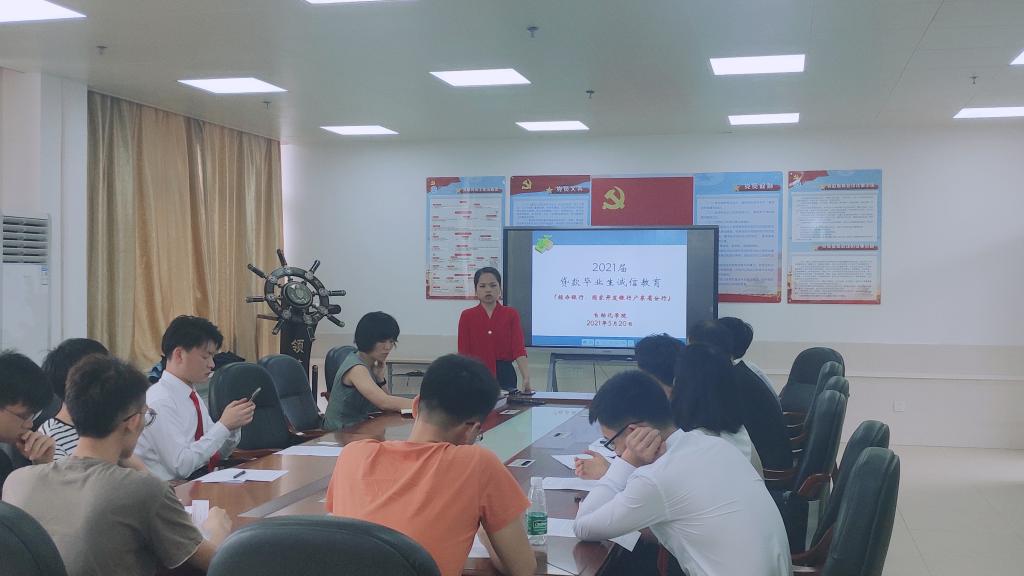 为了更好地做好资助育人工作,公司于2021年5月20日在第一实训楼508会议室,开展2021届贷款毕业生毕业确认暨诚信教育活动,2021届校园地和生源地贷款毕业生参会,辅导员张晓兰、黄晓东出席会议。