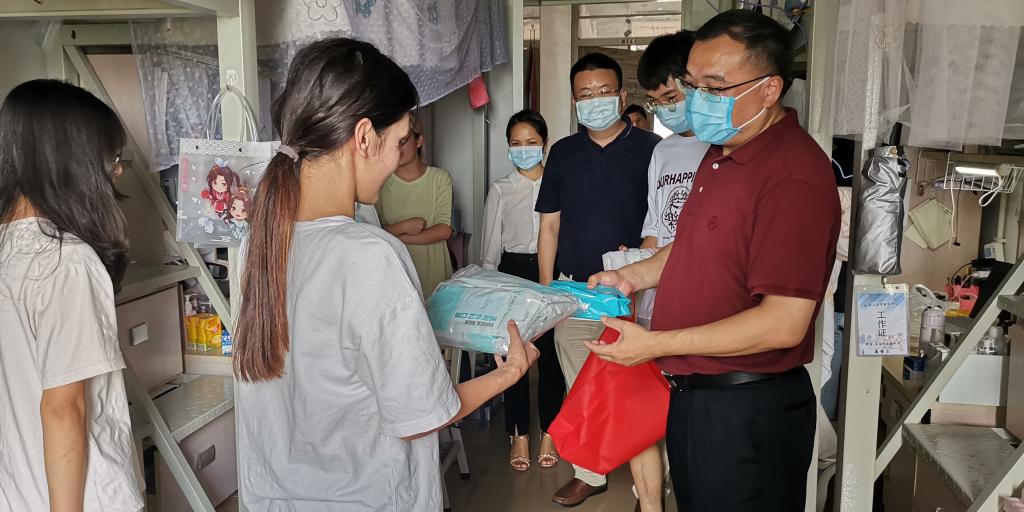 6月15日,公司党委书记杨延军、副书记蒋鹏在辅导员的陪同下,去到员工宿舍,为员工送去防疫物资爱心包,包括医用防护口罩、免洗洗手液、酒精喷雾、酒精湿巾等。在走访的过程中,杨延军书记亲切地与员工拉起家常,仔细了解员工家庭情况、学习情况和防疫情况,关切地询问员工学习生活有没有困难,询问平时在校园活动戴不戴口罩等,在得知员工上课都有坚持戴口罩,并且将食堂饭菜打包回宿舍食用后,杨延军书记露出欣慰的笑容。杨延军书记和蒋鹏副书记细心叮嘱员工,遇到困难要找老师及时反馈,要做好个人健康的第一责任人,严格遵守国家和公司疫情防控的相关要求,主动上报健康情况,戴口罩、勤洗手、不聚集,坚定信心共同打赢疫情防控阻击战。同学们纷纷对公司领导的关心表示感谢,坦言将做好个人防护,专注学习。