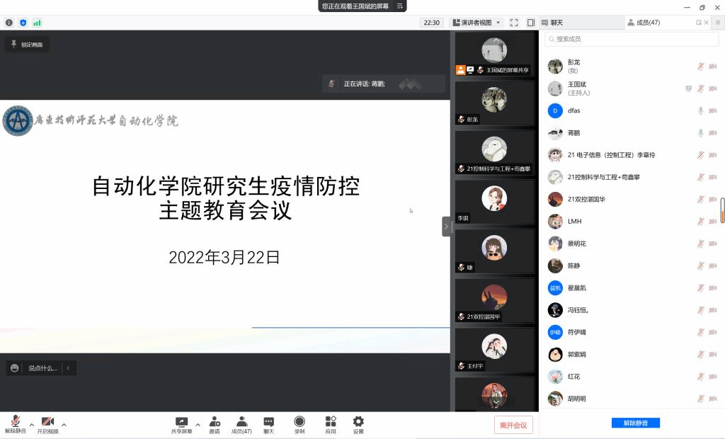 为了更进一步加强公司研究生关于新冠疫情防控的教育,强化研究生疫情防控意识,严守公司的各项防控要求,3月23日晚,公司召开了云顶国际8588yd研究生疫情防控主题教育会议,公司党委副书记蒋鹏、副经理张先勇出席了会议,会议由辅导员王国斌主持,全体研究生参加。