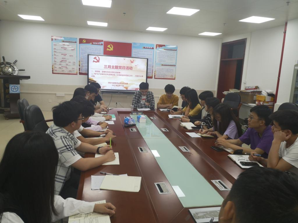 2021年3月17日晚上20:30,测控与建电专业员工党支部于公司会议室508召开三月主题党日活动,学习卢永根同志先进事迹和《论党的宣传思想工作》。