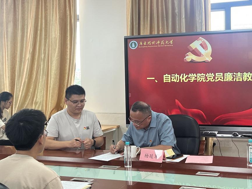 在廉洁教育党课结束后,毕业生党员和杨延军书记签订了廉洁教育承诺书,向党组织郑重承诺并接受监督。